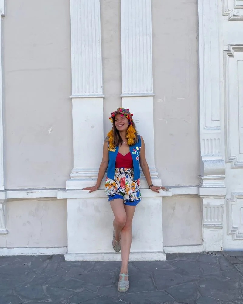 En la maleta viajaron una gorra y un crop top de @margo_origenes. No fue una elección casual. Cuando conocí a Margo, lo primero que le dije fue que sentía que teníamos la misma vibra. Tal vez por el amor compartido por los colores, por esas ganas evidentes de comerse el mundo o por la resiliencia que apareció en la conversación cuando visité su taller.
