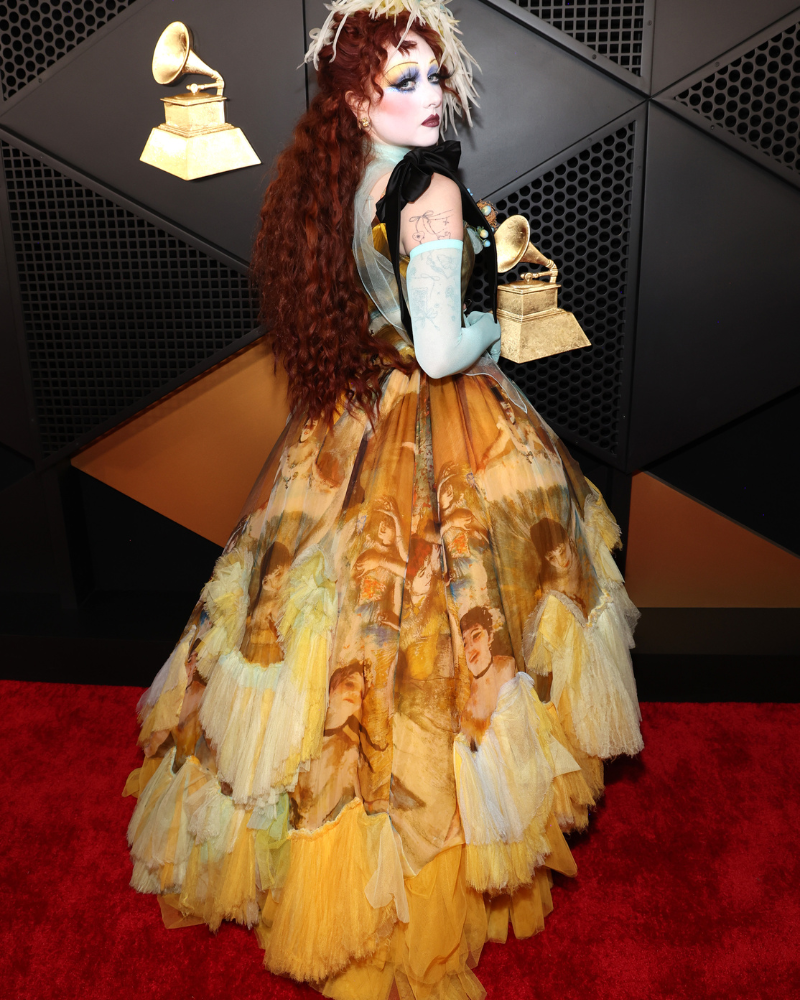Chappell Roan no sigue tendencias, las desafía. Su estilo es un espectáculo en sí mismo, una mezcla explosiva de drag, camp, maximalismo y teatralidad que convierte cada aparición en un statement de identidad. Con colores vibrantes, corsés estructurados, volúmenes extremos y maquillaje exagerado, su imagen es una oda al exceso y la autoexpresión.