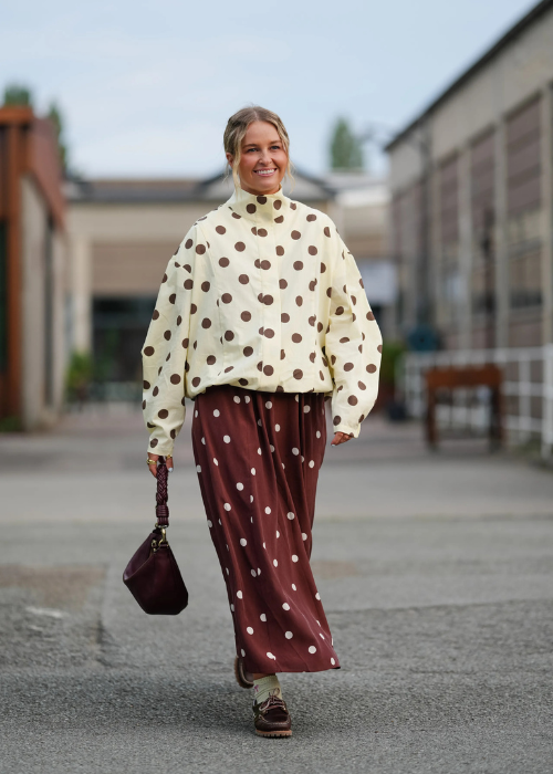 No es lo mismo un lunar mini, que desde lejos se lee como una textura sólida y elegante, que un círculo XL que se convierte en el centro de atención de todo tu outfit. Esta temporada, la clave está en el contraste: llevar una chaqueta de lunares sobre un look monocromático es el truco de estilismo.