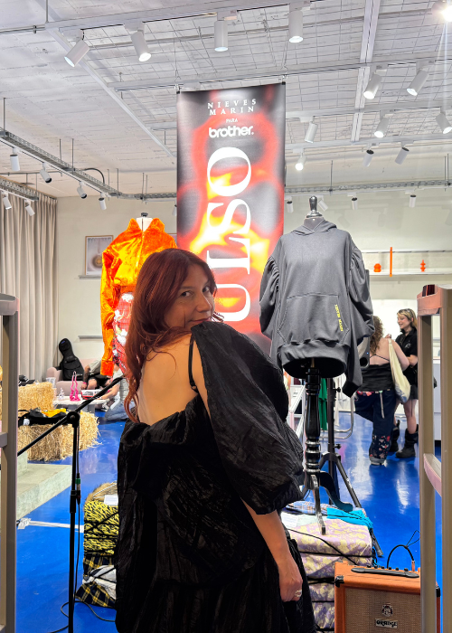 Según nos contó la diseñadora, la entrega nació a partir de una invitación por parte de la marca a conocer sus máquinas y un interés propio de demostrar que con “máquinas más caseras” también se puede lograr una colección con ropa de diseñador.