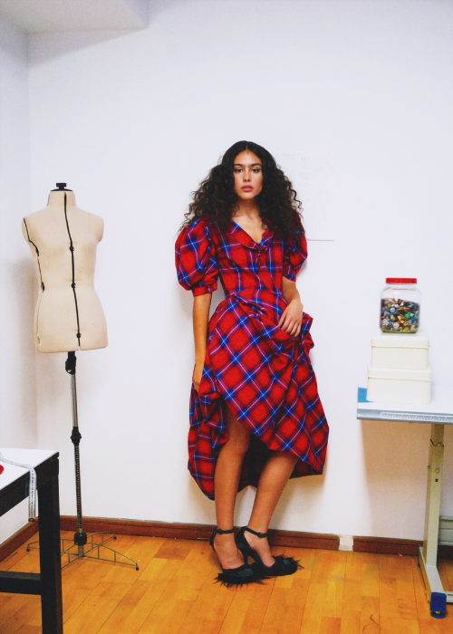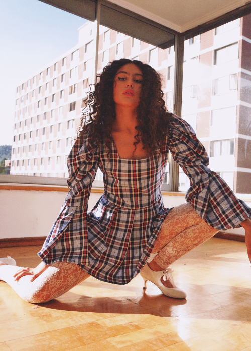 En colaboración con Brother, la diseñadora chilena presentó “Pulso”, una entrega compuesta por seis prendas que plasman las palpitaciones de las máquinas de coser en vestidos abullonados, con estructuras geométricas y estampados cuadrillé.