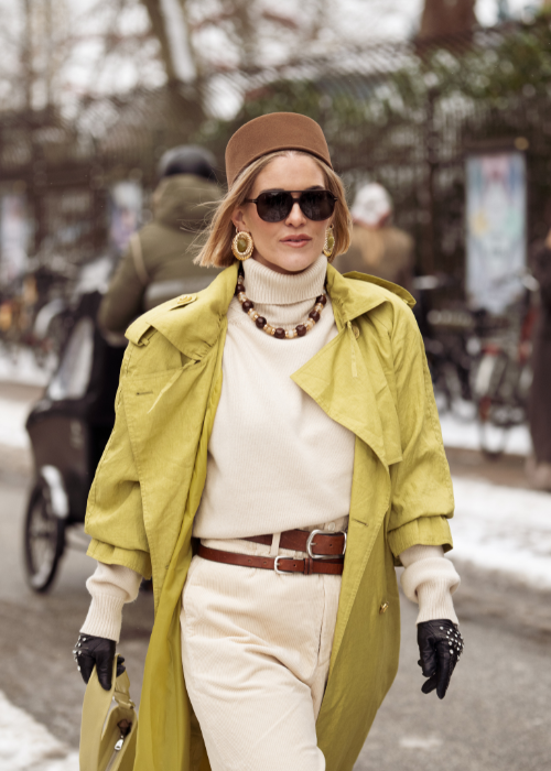 O lo amas o lo odias, pero si tu caso es el primero, puedes combinarlo con un tono negro azabache o un crema cálido para que el chartreuse se sienta sofisticado y maduro; un look de oficina elegante y aún así llamativo.